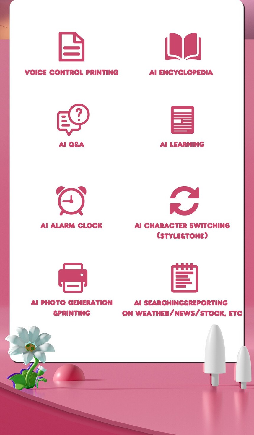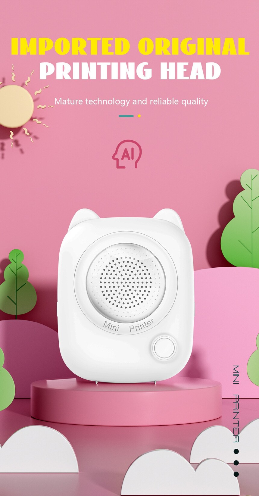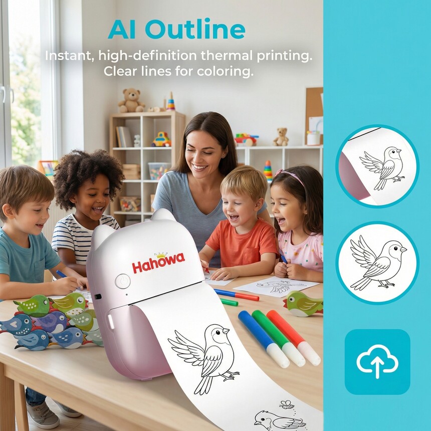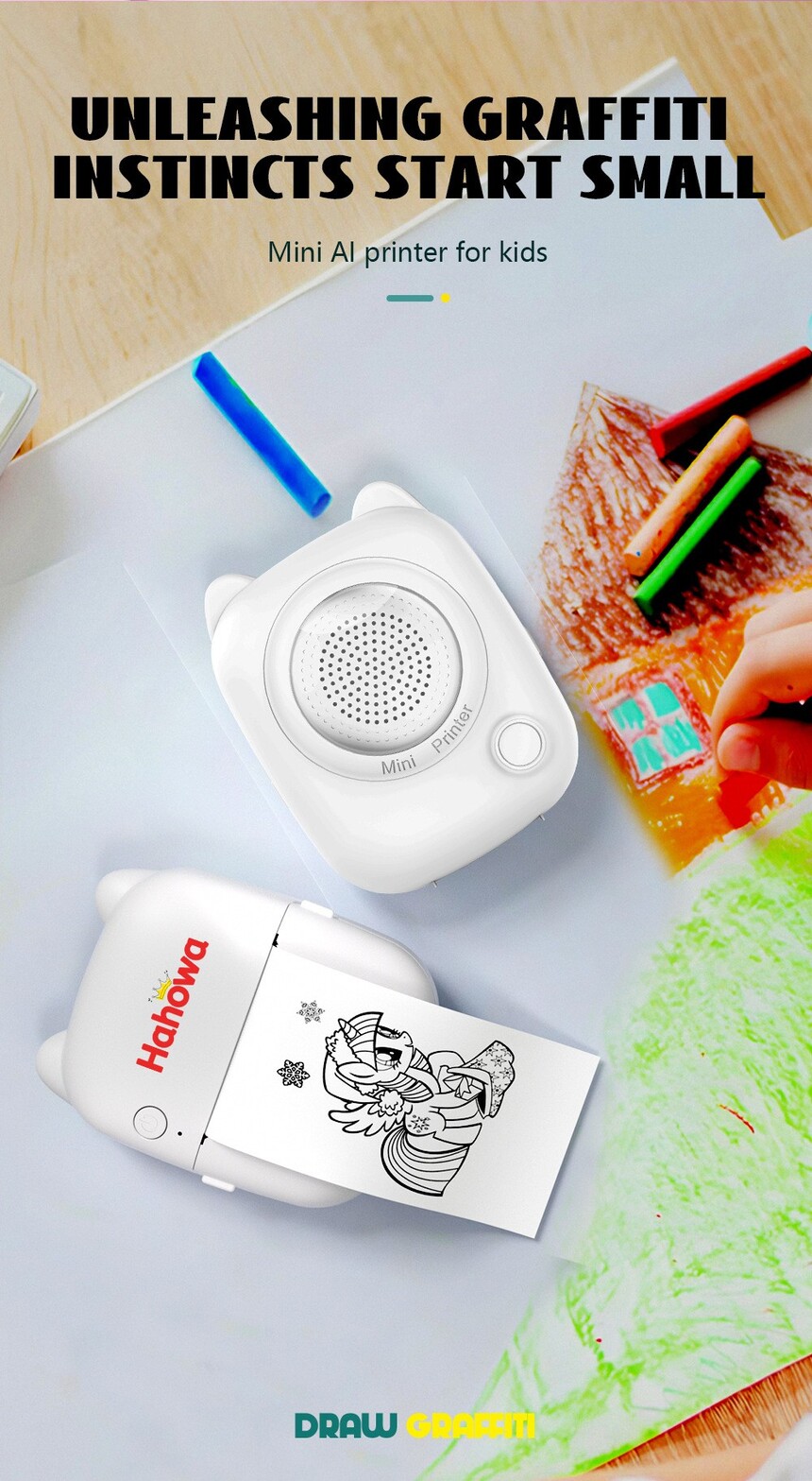 AI printer, with super cool gameplay: The boundless imagination of the baby, which couldn't be depicted before, can now be given to the AI! The baby said: "I want an ice cream with wings!" Just input or speak into the machine, and the AI will immediately generate t he line drawing! When printed, it becomes a unique customized coloring card! AI打印机,玩法超酷: 宝宝天马行空的想象力,以前画不出来,现在交给AI!宝宝说:“我要一个长着翅膀的冰淇淋!”只要对着机器输入或语音,AI立马生成线稿!打印出来就是一张独家定制的填色卡! Introducing our innovative printer, a smart AI-powered toy that combines creativity with convenience. This inkless thermal printer allows you to effortlessly bring your ideas to life—just draw what you say! Perfect for art enthusiasts and children alike, this portable printer is designed to fit easily into your lifestyle and unleash your imagination on the go. Key Features: AI-Powered: Utilizes advanced artificial intelligence for smart and intuitive printing. Inkless Technology: Say goodbye to messy ink cartridges. Print clearly and efficiently with thermal technology. Portable Design: Lightweight and compact, making it an ideal companion for crafting, journaling, and sharing fun moments. Creative Output: Transform your illustrations and notes into printed treasures—with just your voice and a simple drawing! Whether you're an artist looking to showcase your work or a parent wanting to engage your child's creativity, our mini printer is the perfect tool to make printing fun, easy, and mess-free. Get yours today and start bringing your ideas to life!